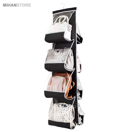 آویز کیف طبقاتی داخل کمد محصولی نوین و بسیار کاربردی است. این آویز به صورت دوطرفه همراه با قلاب آویز جهت آویزان کردن داخل کمد و یا پشت درب می باشد. آویز کیف طبقاتی امکان استفاده از حداقل فضای ممکن برای نگهداری کیف های شما را فراهم می کند. فضای محفظه های نگهدارنده به گونه ای طراحی شده که علاوه بر کیف از آن می توان جهت نگهداری کفش نیز استفاده نمود. از دیگر ویژگی های این آویز، جلوگیری از کثیف شدن، له شدن و خراب شدن کیف و کفش است. محصولی با طراحی جدید، ساده و در عین حال بسیار کاربردی که می تواند مشکل شما در نگهداری از کیف های دستی را برطرف کند. آویز و نگهدارنده کیف به صورت دوطرفه طراحی شده و ظرفیت آن 8 کیف می باشد.